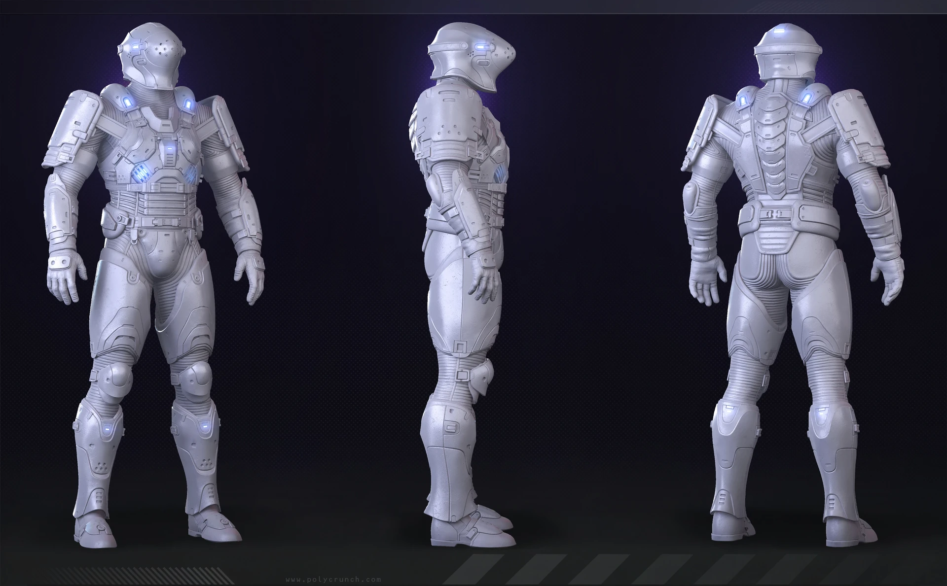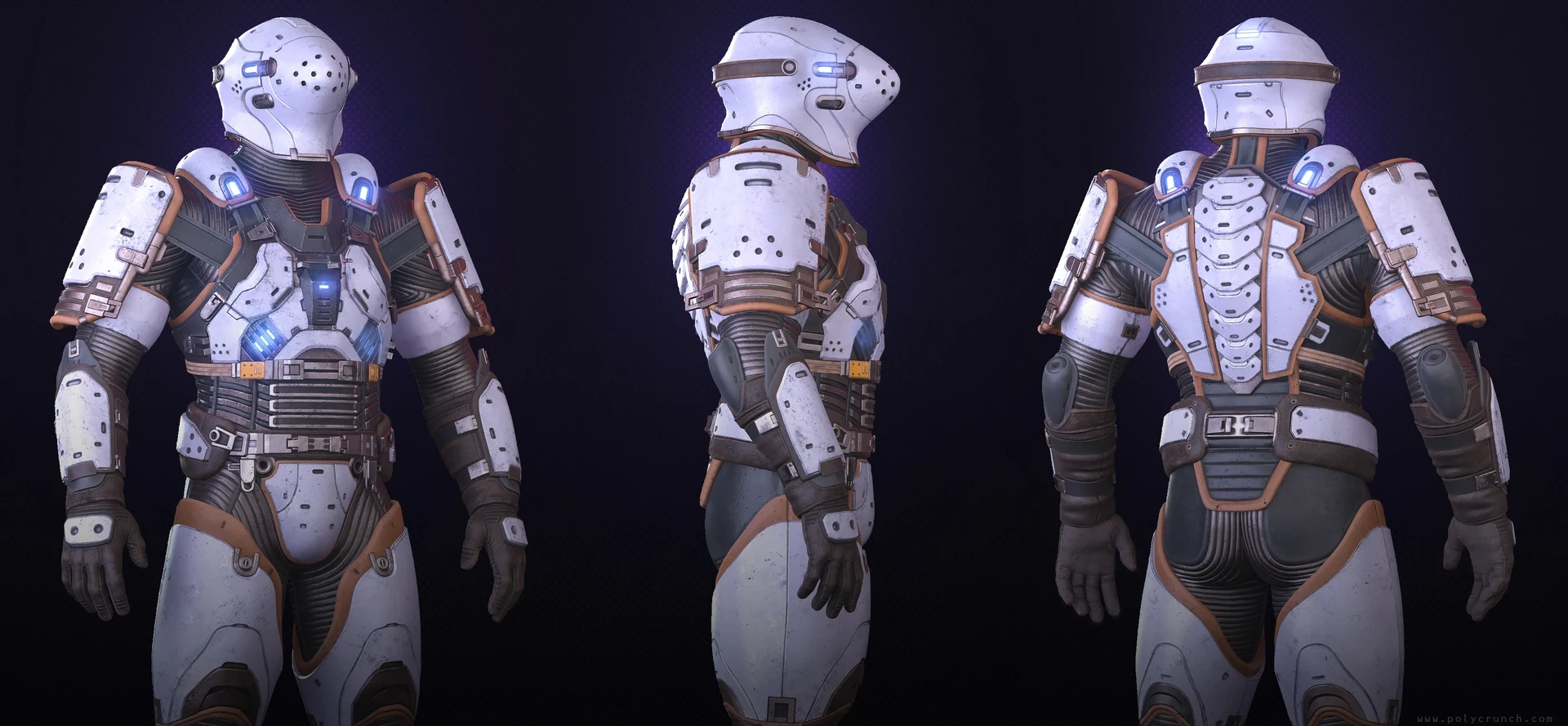 I’ve been a long-time admirer of Ariel Perez’s aesthetic, and for this project, I wanted to bring one of his iconic concepts into a real-time environment. To ensure the character could handle complex deformations and maintain mechanical plausibility in Unreal Engine, I adapted the design to a more athletic body type. This allowed for a deeper exploration of the person beneath the helmet while keeping the spirit of the original silhouette intact.