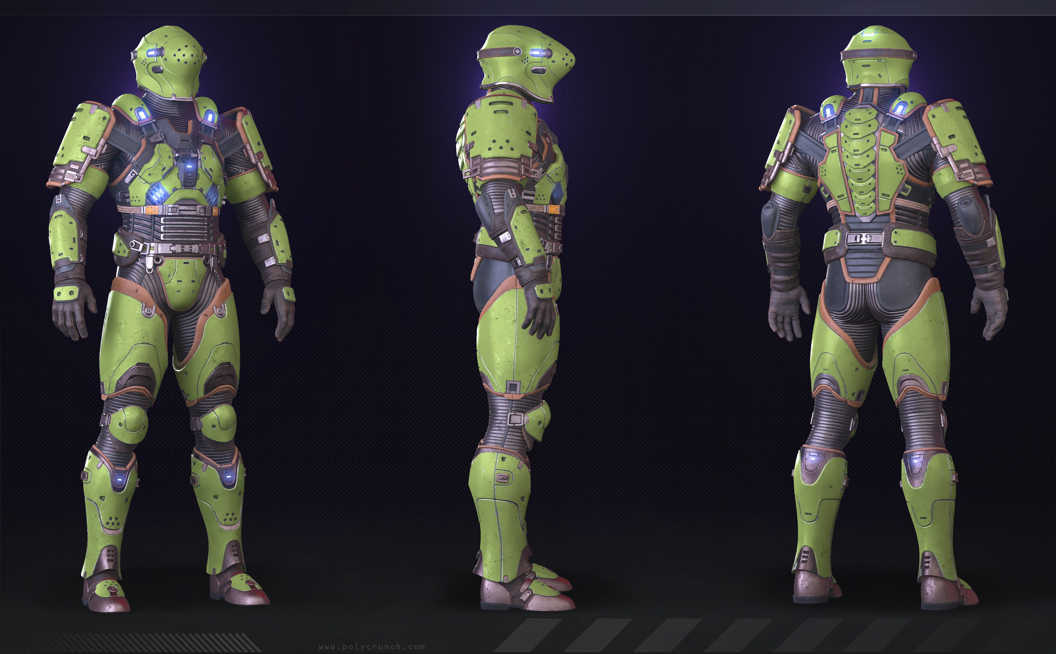 I’ve been a long-time admirer of Ariel Perez’s aesthetic, and for this project, I wanted to bring one of his iconic concepts into a real-time environment. To ensure the character could handle complex deformations and maintain mechanical plausibility in Unreal Engine, I adapted the design to a more athletic body type. This allowed for a deeper exploration of the person beneath the helmet while keeping the spirit of the original silhouette intact.